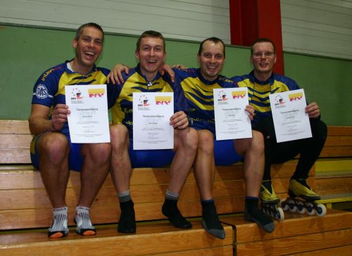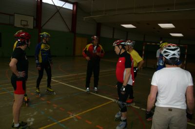 Am Sonntag konnten es Olli und Dietmar nicht lassen noch vor dem Frühstück im Dunkeln wild durch die Stadt zu rennen. 8:00 Uhr gab es dann Frühstück, denn um 9:00 Uhr ging es in der Halle weiter. Begonnen wurde mit einem Theorieteil bei dem es sowohl um Trainingspädagogik ging, wie auch so einige praktische Vereinsfragen was Versicherung usw. anging und wie man an eine Bahn kommen könnte oder eine Skatenight als Demo tarnt. Wird sich zeigen was wir aus den Infos machen. Dann wieder Skates an und weiter mit den anderen Übungsthemen. Damit die alten Kinder noch auf ihre Kosten kommen, hatte Bernd noch ein paar Spiele zum Abschluss parat. Dann noch ein Gruppenphoto, duschen und mit Sack und Pack wieder ins Auto und zurück auf der Autobahn.