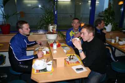 Am Samstag ging es für Olli, Cornelius, Maik und Fahrer Dietmar schon um 2:00 Uhr früh los, damit bei Schnee und Nacht und Nebel die Vierertruppe rechtzeitig um 9:00 Uhr beim Lehrgang im 400 km entfernten Darmstadt ist. Allerdings lief es doch besser durch als gedacht und so war noch reichlich Zeit für ein ausgiebiges Frühstück bis es dann in die Rollsporthalle ging.