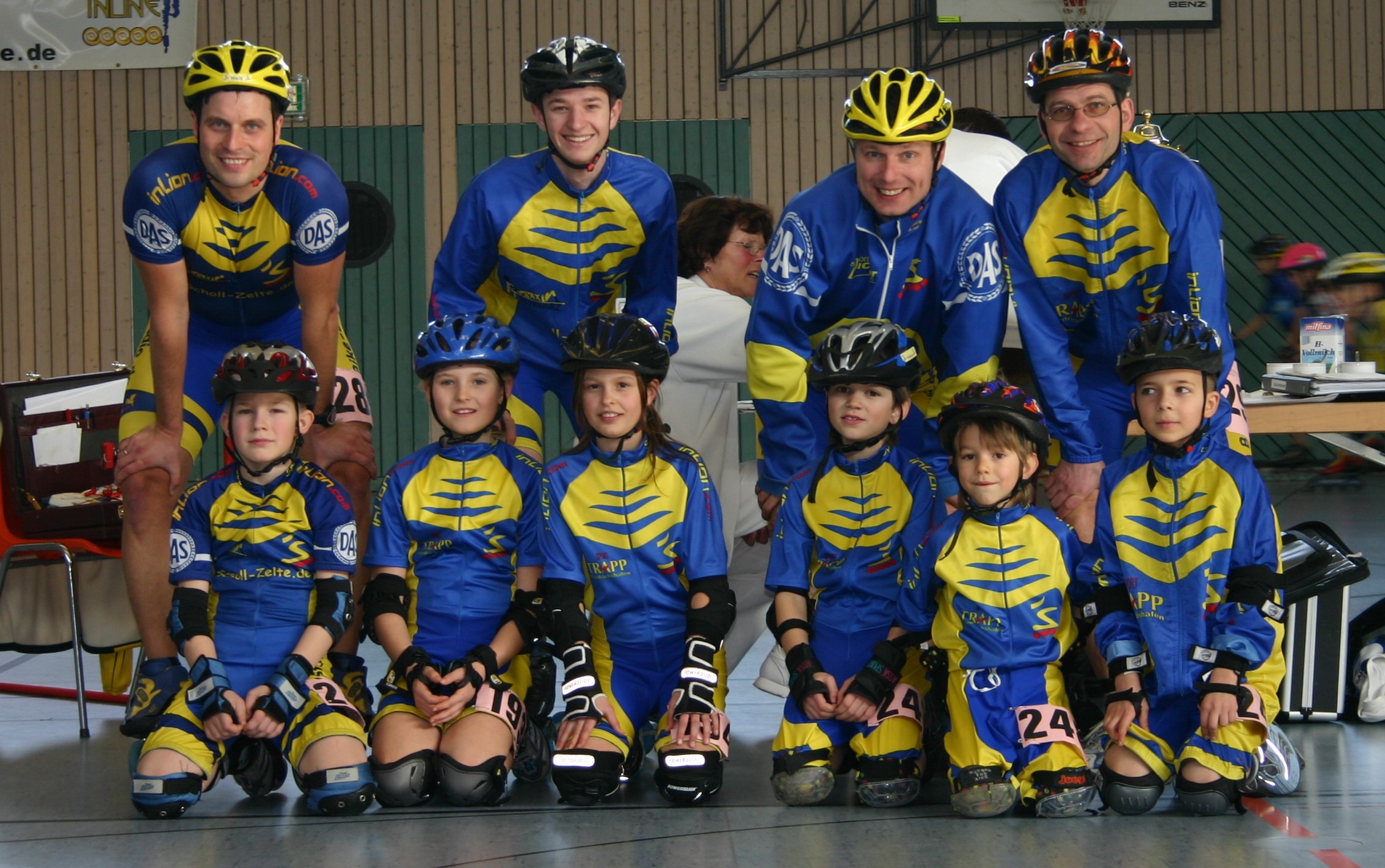 Bild: Stellten sich der deutschen Spitze im Inline Speedskating: Von links, vorne: Steven Hauk, Franziska Baur, Eyleen Richter, Fabian und Niclas Kästel und Steven Hauk. Hinten: Maik Scholl, Sebastian Höninger, Danny Corbo und Andreas Titze.