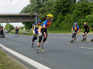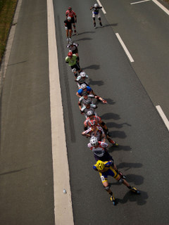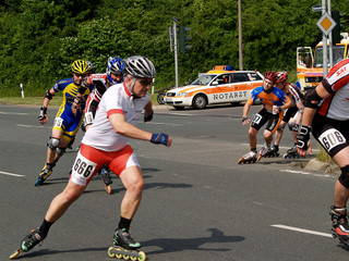 es war ein nettes und gut organisiertes Rennen vom Speedteam Nürnberg und zählte mit zum BIC. Bei perfektem Wetter wurden auf einem gesperrten Autobahnabschnitt 5 1/4 Runden absolviert. Daher gab es eine 180'-Kehre, vor der aber rechtzeitig gewarnt wurde, auf der anderen Seite wurde über die Ausfahrt gewendet. Lizenzfahrer und Freizeitskater starteten in einem Block, aber getrennt nach Frauen und Männern.Leider waren vom Speedteam nur Sonja und ich dabei. Sonja erreichte mit 1:36:42 den 15.Platz (AK 7), die Siegerin, Michaela Heinz-Gerten kam nach 1:22:28 ins Ziel. Ingo kam nach 1:35:30 ins Ziel (67.Platz, AK 23), der schnellste bei den Männern war Stefan Matthaei mit 1:15:17