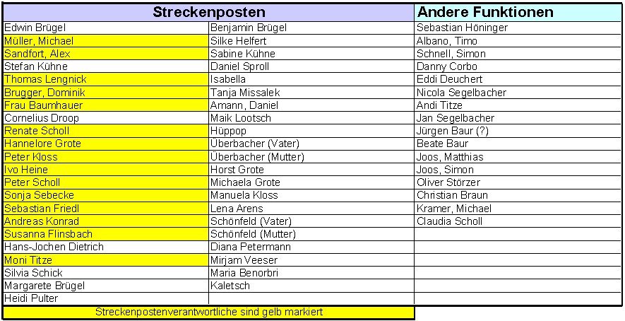 Von 12:00 - 12.30 Uhr erfolgt die Einweisung der Streckenposten, jeder bekommt einen kleinen Plan seines Postens. Anschließend müssen die Posten bezogen werden.