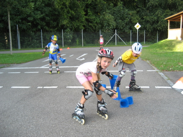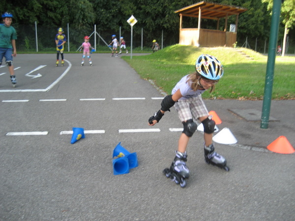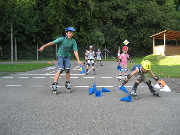 Der Verkehrsübungsplatz am Riedlewald eignet sich für die Kinder bestens, um die Grundtechniken für das Skaten zu erlernen. Immer wieder werden mit den Kindern spielerisch Übung gemacht um ihnen Sicherheit zu geben und dabei noch Spaß zu haben.