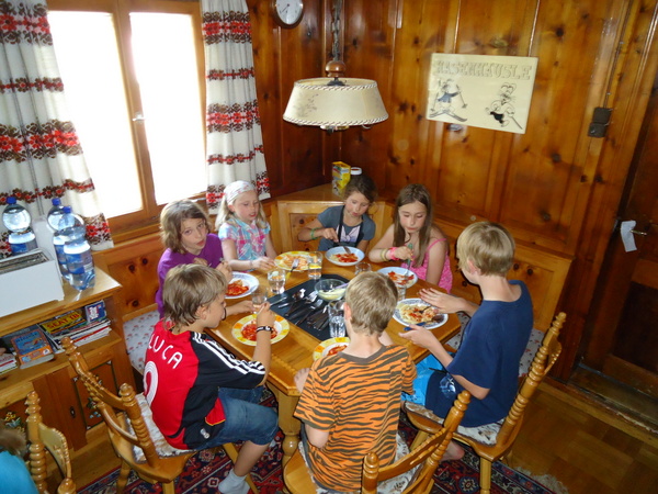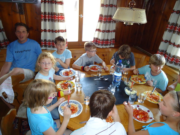 Das Wetter war einfach herrlich als sich am Freitagnachmittag 18 Kinder vom Speedteam mit ihren 3 Trainern Klaus, Svend und Stefan am Bahnhof in Friedrichshafen trafen, um übers Wochenende mit dem Zug ins Montafon zu fahren. Sämtliche Koffer und Gepäckstücke wurden zu Anja ins Auto geladen, damit sich alle ganz unbeschwert ins Reisevergnügen stürzen konnten. Schnell waren die 4 reservierten Abteile belegt und auf gings zum 1. Halt nach Lindau. Nach 1 ½ Stunden mussten alle in Bludenz in die Regionalbahn wechseln und ab Schruns fuhr der Bus dann die ganze Meute ganz bequem bis vor die Haustüre. Dort wurden sie von Melanie und Sabine, die als Versorgungstrupp ebenfalls mit dem Auto voraus gefahren waren und der mittlerweile angekommenen Anja in Empfang genommen. Neugierig wurde das Haus in Augenschein genommen und recht schnell waren alle Zimmer verteilt und auch schon bezogen. Mit Nudeln und Tomatensoße gestärkt wurde noch ein wenig die Gegend erkundet und gegen 22.00 Uhr kehrte dann auch Ruhe ein.