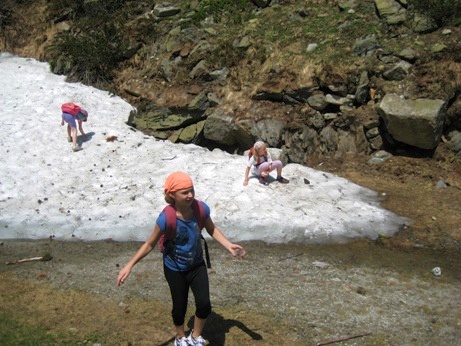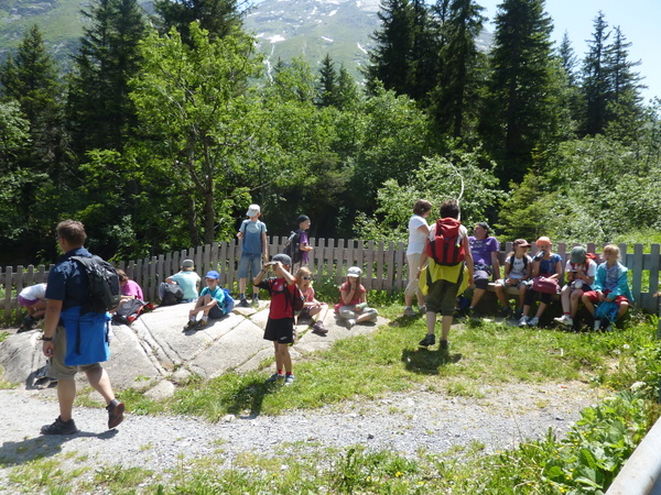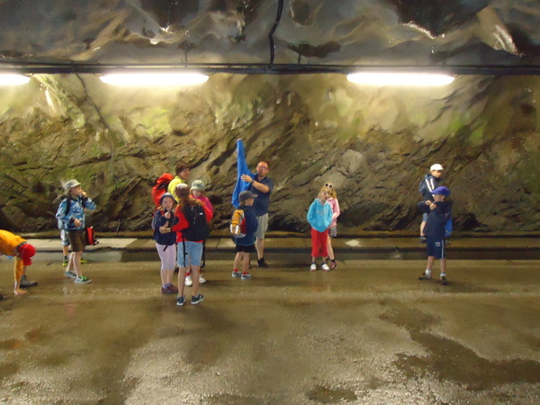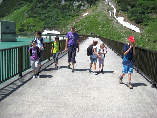 Nach einer wohlverdienten Pause und gut gestärkt mit einer Brotzeit ging es dann langsam wieder bergab. Diesmal jedoch nicht über Stufen, sondern durch einen kühlen und dunklen Bergbaustollen. Nach 2km lautem Gejohle und vielen Buhu Rufen waren wir froh, dass uns die Sonne auf der anderen Seite des Berges wieder ein wenig aufwärmte. Ein kleiner Teil von uns hatte sogar noch genug Energie den Staudamm des Vermuntsees zu erklimmen und zu erkunden und schlussendlich nahmen wir dann alle zusammen den Bus über die kurvenreiche Silvretta-Hochalpen-Straße zurück zu unserem Haus.