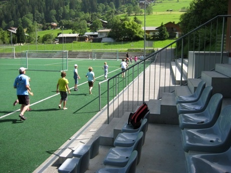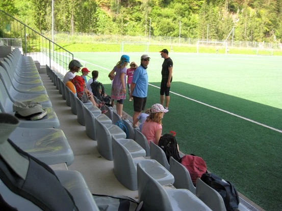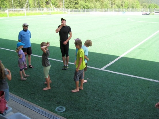 Dort angekommen stärkten wir uns mit Zopfbrot und Waffeln und schnell suchte jeder seine Badesachen zusammen, denn das schöne Naturfreibad Mountain Beach wollte sich keiner entgehen lassen. Ein besonderes Highlight waren hier die großen luftgefüllten Gummireifen auf denen man vom oberen zum unteren Badesee auf einem künstlich angelegten Rafting Bach hinabjagen konnte. Ein Wermutstropfen war jedoch die 45kg Beschränkung, die die 3 Trainer in diesem Fall hart traf. Aber auch sie bleiben natürlich nicht trocken an diesem Nachmittag. Viele gönnten sich noch schnell ein Eis bevor es wieder zurück zum Abendessen ging. Die Wienerle gaben dann wieder so viel Kraft, dass sogar der naheliegende Fußballplatz noch voll zum Einsatz kam. Gegen 23.00 Uhr war dann ein sehr ereignisreicher Tag zu Ende.