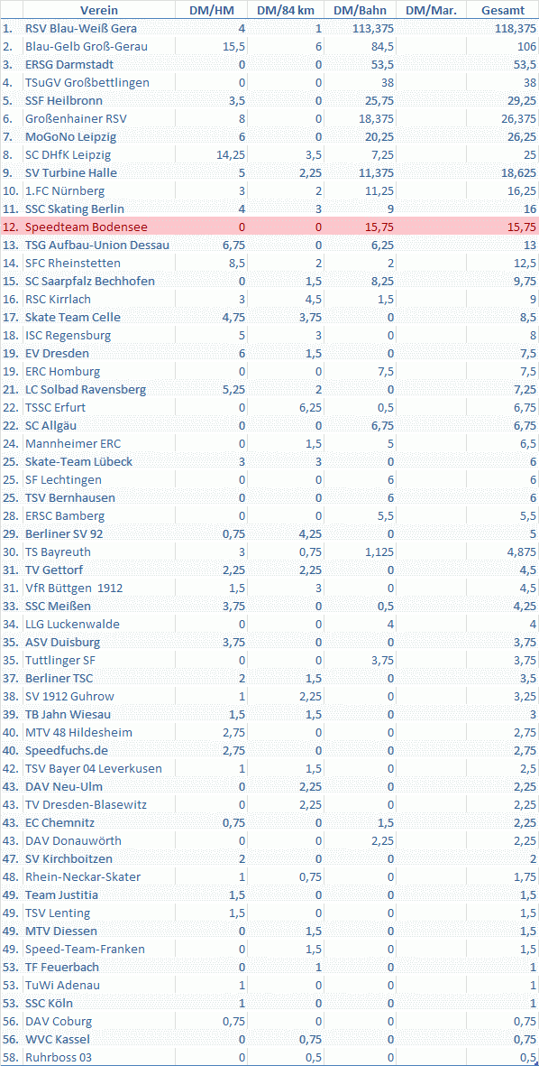 Nach aktuellem Zwischenstand zum Goldenen Inliner 2013 nach drei Meisterschaften ist das Speedteam-Bodensee erstmals seit Jahren wieder