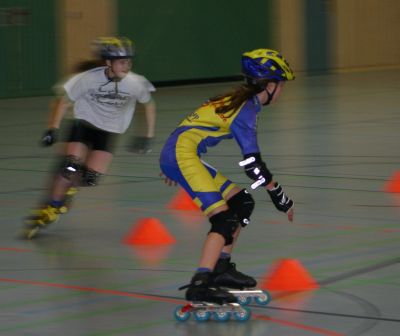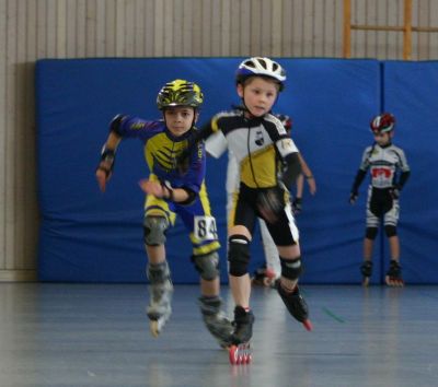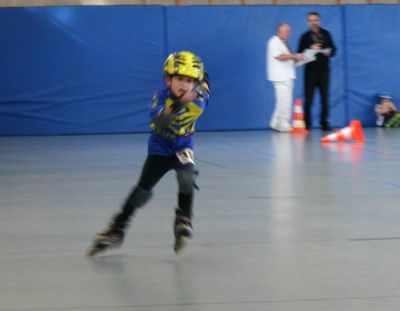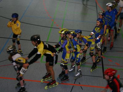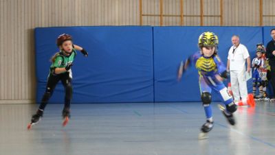 Moritz Scholl und Julian Kühne schafften die ersten Punkte für den Verein und Moritz gewann vor Julian den Sprint, wie auch die folgenden Rennen in seiner Alterklasse. Julians Schwester Anna Kühne in der Schülerklasse B (8 und 9 Jahre) hatte mit mehr Konkurrenz zu kämpfen und sicherte sich in den 4 Kategorien Sprint, Geschicklichkeit, Punkte- und Ausscheidungsrennen den Bronzeplatz vor immerhin 14 Konkurrentinnen aus der Schweiz, Frankreich und den anderen Bundesländern. Jasmin Bülow, Felix Scholl und Steven Grote traten in der Schülerklasse A an, um auch für den Löwen-Cup zu punkten und Jasmin überzeugte mit einem tollen Platz im Mittelfeld der deutschen und internationalen Elite der jungen Speedskater. Besondere Stärken bewiesen die Kinder grade in der Disziplin Geschicklichkeit in der es darum geht auf Zeit um Hütchen vorwärts oder rückwärts zu skaten, Hindernisse zu überwiesen oder im Kreis zu fahren. Auch Eyleen Richter und Franziska Baur schafften es in der Klasse der Jugend im Parcours auf fordere Plätze.