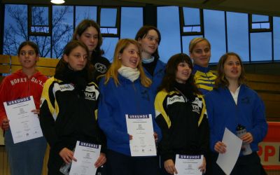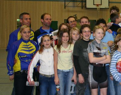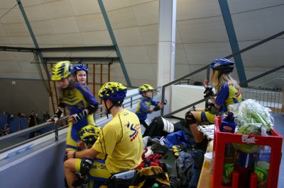 Bild 3: Franziska Baur (links) und Eyleen Richter (3te von rechts) warten auf den Startschuss zum Ausscheidungsrennen in der Jugendklasse und den Saisonstart 2007.