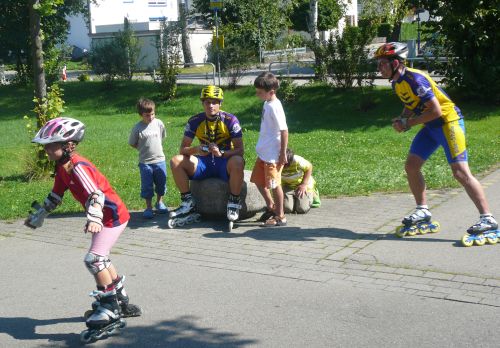 Ein Programmpunkt des Sommerferienprogramm in Ailingen war das Inline-Skaten mit dem Speedteam-Bodensee. Fast alle haben das Skate-Abzeichen geschafft.