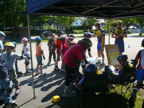 Unter dem Motto „Rolle unter Kontrolle!“ versuchten sich die Flitzer an den ersten beiden Stufen des Skate-Abzeichen. Selbst die kleinsten Anfänger schafften wenigstens eine Disziplin für den runden Aufnäher des Deutschen Inline- und Rollsport-Verbandes und andere meisterten sogar auf Anhieb Stufe 2, was eine beachtliche Leistung ist.