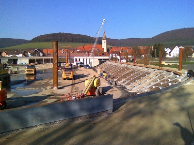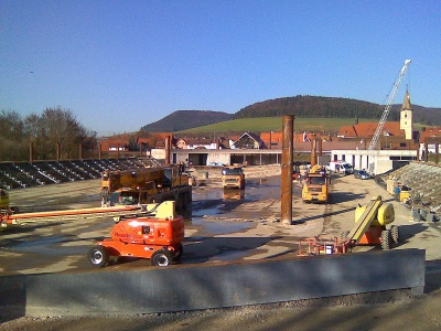 Bei strahlendem Sonnenschein gehen die Bauarbeiten wie heute Nachmittag zügig vorran.