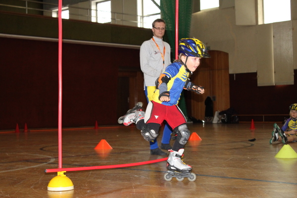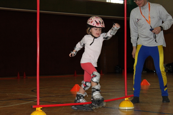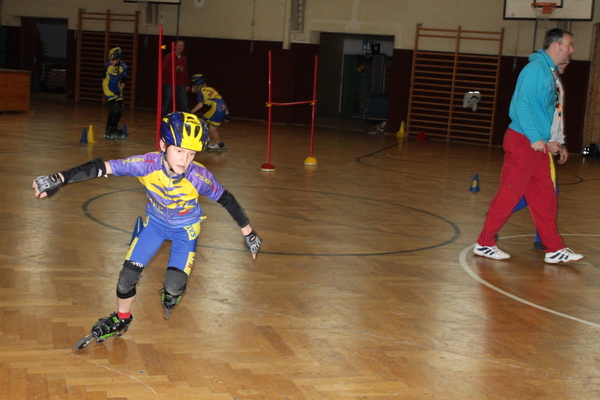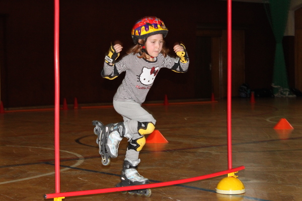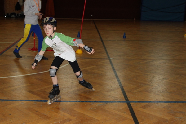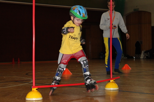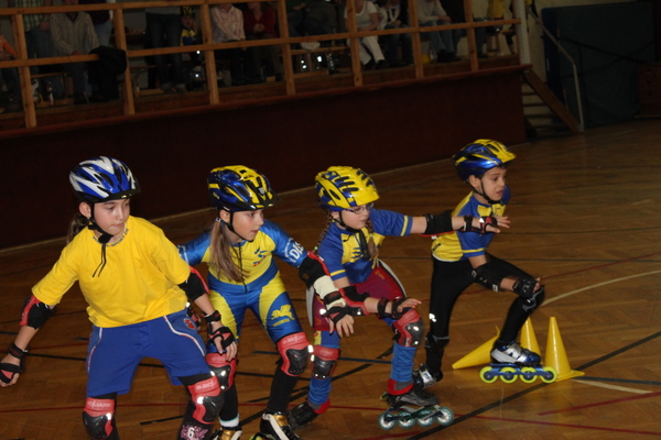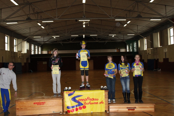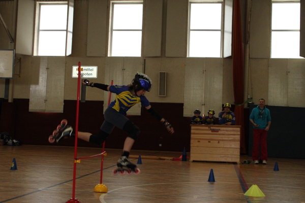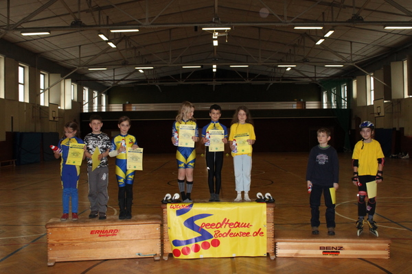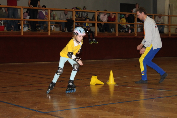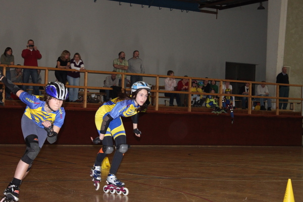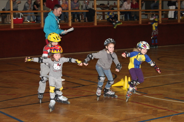 Beim traditionellen Jahresabschlussrennen der jüngsten Skater vom Speedteam-Bodensee ging es am letzten Sonntag heiss her. Auf dem Parkettboden in der Turn- und Festhalle Friedrichshafen gingen die Nachwuchsläufer mit extremer Schieflage in die engen Kurven. Anders als auf Asphalt gehen Stürze in der Regel glimpflich aus, so dass sich einige bis ans Limit wagten.
