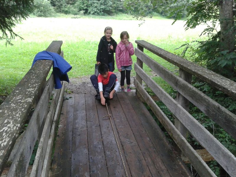 Wieder war das Wetter erst verhangen und wieder wurde am Programm draußen festgehalten. Schon während dem Frühstück wurden die Stationen für das Geländespiel vorbereitet. In zwei Gruppe mussten die Kinder von einer Station zur anderen teils sportliche Aufgaben lösen, Dinge sammeln und suchen oder Ratespiele lösen. So wurde jeder gefordert und nochmal der Teamgeist geweckt. Auf die hungrige Meute wartet an der Hütte das letzte gemeinsame Essen. Danach wurde die Hütte wieder auf Vordermann gebracht und die Rückfahrt nach Hause angetreten.
