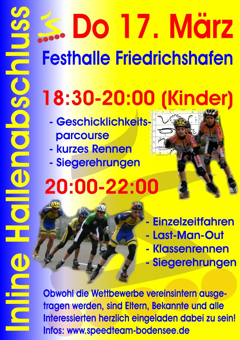 "Am letzten Trainingstag in der Festhalle in Friedrichshafen feiern wir wieder unseren Hallenabschluss. Hier soll keiner zu kurz kommen und es wird diesmal sogar noch einen Wettbewerb der Kinder vorneweg geben. In erster Linie soll es ein schöner gemeinsamer Abend werden.
