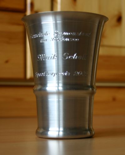 Der Bürgermeister begrüßte also die Kandidaten herzlich und rief im Anschluss jeden einzelnen nach vorne, nachdem die Leistungen vorgelesen waren. Für jeden gab es einen Becher und Gutscheine fürs Hallenbad.