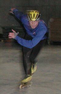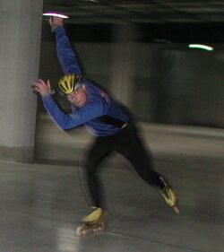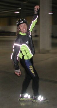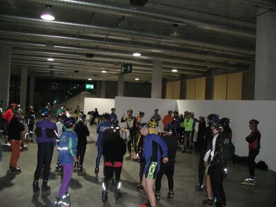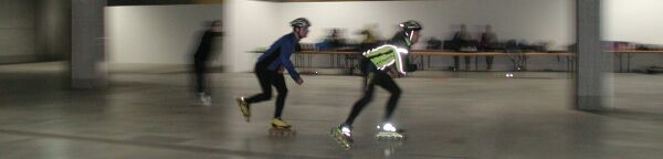 Erst wird noch nach Belieben von 7 bis 8 eingefahren, sehr geiler Belag! Am Anfang wird in Gruppen aufgeteilt. Wobei das so abläuft, daß Profis und Rest getrennt wird. Der Rest ist dann natürlich die Masse und so werden 3 wild gemischte Gruppen gemacht. Jede Gruppe wird von einem Salomonfahrer betreut und es wird so eine Art Grundlagentraining gemacht. Allerdings ist das auch sehr hilfreich. Unter anderem so Koordinationsübungen wie es Arthur jetzt kann. Viel Kurventraining und es ist eigentlich ganz gut gemacht. Aber eben nach einer Stunde schon wieder rum. 21 bis 22 Uhr wieder freies Ausfahren und fertig. Eine Stunde Fahrt nach Hause und mit Fahrt etwa 30 DM los. Naja, keine Dauerlösung aber auch mal gut!