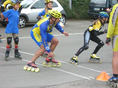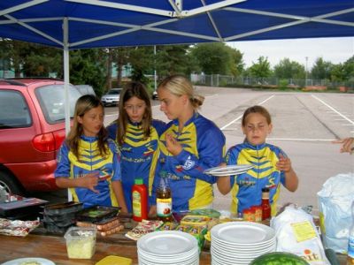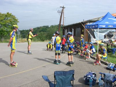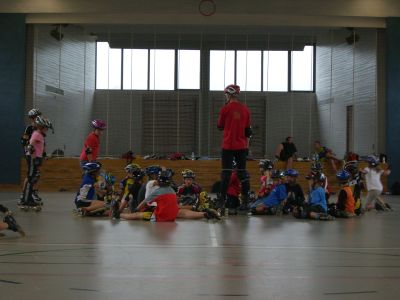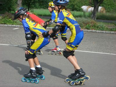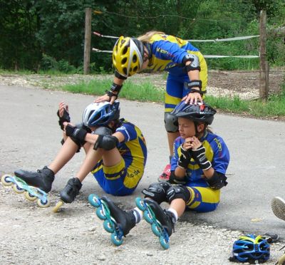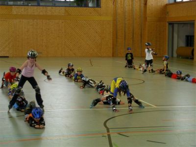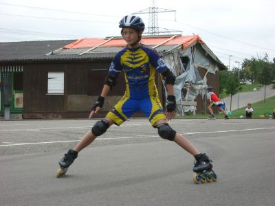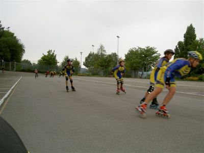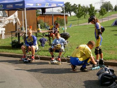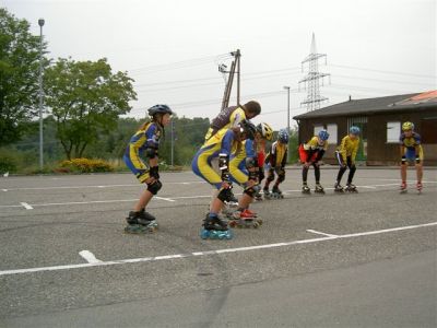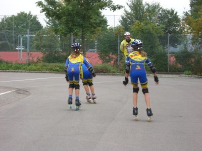 Nach unserer Ankunft in Großbettlingen gegen 9.00 Uhr erfolgte die Begrüßung der Teilnehmer und dannach wurden gleich die Zelte aufgebaut. Anschließend gabs von 10.30 - 12.00 die erste Trainingseinheit auf der Bahn. Für die Kleineren und Anfänger gings in die Halle zum Grundlagen-Training. 12.00 - 14.00 Mittagspause mit Pizzaessen! Leider fing es nachmittags an zu regnen, so daß wir auch in die Halle ausweichen mußten. War aber auch eine schöne Trainingseinheit mit Spielen, Technik u. Abschlußstaffelrennen. Unser Verein machte anschließend noch 90 min. bei Reiner Keppeler und seinen Junioren mit. Bauch-Beine-Po hieß die Einheit und erzeugte bei den meisten von uns spätestens am nächsten Tag Muskelkater. Abends war es wieder trocken und es wurde gegrillt mit Lagerfeuer. Am Mittwoch ging es nach reichhaltigem Frühstück wieder für 90 min. auf die Bahn. Kurventraining. Zum Mittagessen gabs Pasta mit Hackfleischsoße u. Käse. Nachmittags sind wir mit den Autos Richtung Nürtingen gefahren. Da haben wir zuerst eine kleine Ausfahrt gemacht und dann für Groß und Klein noch eine Bach - Wanderung (kalte und nasse Füße garantiert!). Als Abschluß gabs für jeden noch ein dickes Eis und nach einer heißen Dusche sind wir gegen 18.00 wieder nach Hause gefahren. Rundum eine gelungene Sache, die sich für alle Teilnehmer gelohnt hat.