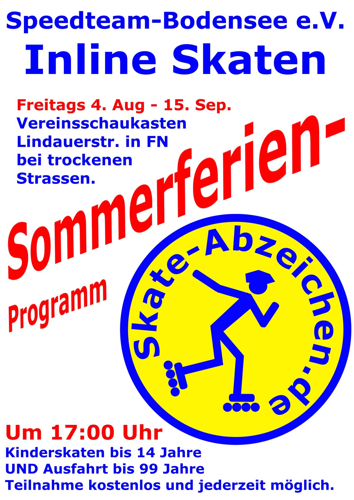 Am Freitag geht das Sommerferienprogramm los. Für uns eine gute Chance noch ein paar Kinder und evtl. auch Erwachsene für unseren Sport zu begeistern. Bitte helft mit dafür zu werben. Das Plakate hängt in hoher Auflösung mit dran. Einfach ausdrucken und verteilen.