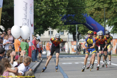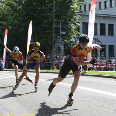 Christian Tennert, der spätere Sieger, vom Speedteam Freiburg setzte sich nach einigen Runden von der Spitzengruppe ab, die dann in ein sehr taktisches Rennen überging. Jede Runde schied der letzte Skater aus, so dass man die spannende Phase abwartete, denn abgesehen von Christian durften sich nur 4 weitere Skater der 7-köpfigen Verfolgergruppe am Zielsprint beteiligen.
