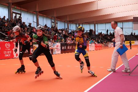 Die 200 Nachwuchsläufer hatten 2 Bewerbe auf der orangefarbigen 200m Bahn auszutragen. Unterteilt waren die Wettkämpfe in eine Einsteigerklasse, den Rookies, und in den Bereich der aktiven Schüler- und Jugendklassen. Bei der sehr starken internationalen Konkurrenz ging es für die meisten der Blaugelben vom Bodensee darum, Erfahrungen im Rennen und auf einer solchen Bahn zu sammeln. Umso bemerkenswerter war der herausragende 2. Platz in der Tageswertung für Yamin Benarbi (Schüler B), der sich gegen ältere Konkurrenz sehr selbstbewusst durchsetzen konnte. Den ausgezeichneten 4. Rang errang Moritz Scholl (Schüler A), der nur hauchdünn das Podium verpasste. Ebenfalls 4. wurde Dinah Speth, die großen kämpferischen Einsatz zeigte bei den Mädchen (Schüler B).
