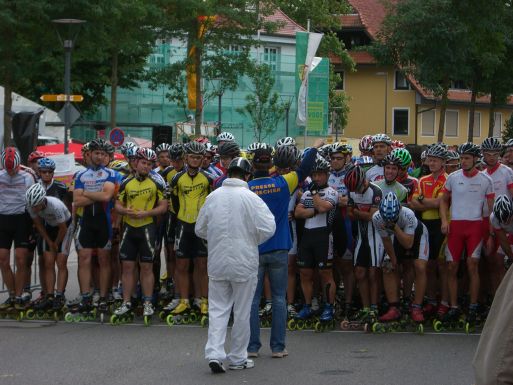 Frau Flucht, Ailinger Ortsvorsteherin gab um 14:00 Uhr den Startschuß für die Männer. Durch die Anstiege zerfiel das Feld schnell in kleinere Gruppen. Bereits nach einer Runde war das Feld weit auseinandergezogen und die Spitzengruppe war auf 30 Skater geschrumpft. Erfreulich für das Speedteam-Bodensee, dass sich 4 Fahrer noch in dieser Gruppe behaupten konnten (Sebastian, Olli, Andi und Thomas).