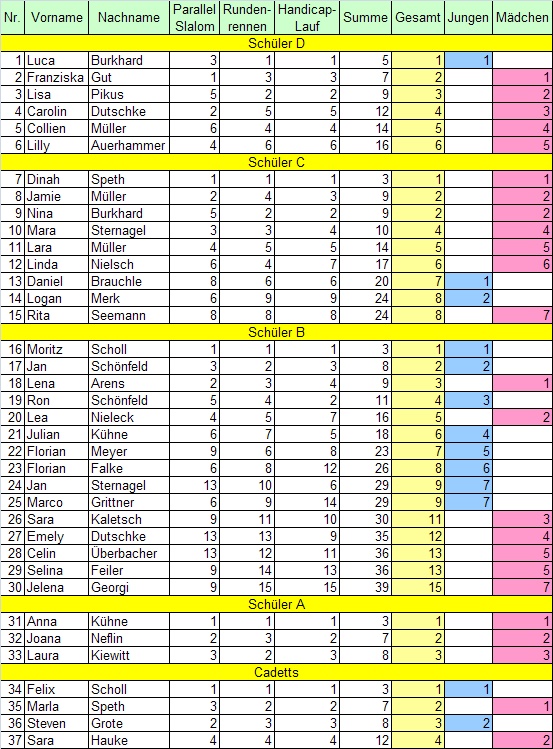Zunächst wurde mit einem Parallelslalom im sogenannten Doppel-K-O-System begonnen.