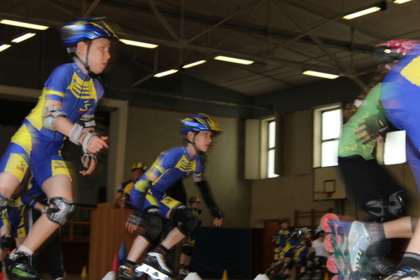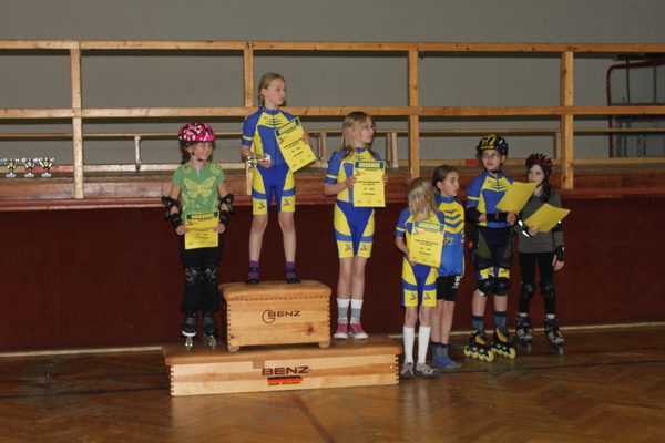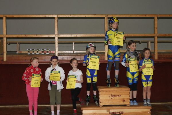 Und zu guter Letzt der Handicap-Lauf: Der Beste der vorherigen Rennen startete als Letzter. Maximaler Rückstand zur Startlinie war eine 1/2 Runde für Dinah bei den Schüler C und Moritz bei den Schülern B. Es kam also nicht nur auf Geschwindigkeit an, sondern auch auf eine im Skaten wichtige Disziplin, die Überholtechnik. Dass dies durchaus eine faire Wertung war, zeigte sich auch dadurch, dass die meisten ihre Position aus den beiden anderen Wertungen halten konnten. Ein großer Vorteil dieses Wettkampfes war auch, dass es zu keinen Überrundungen kam und deswegen es sehr leicht auszuwerten war.