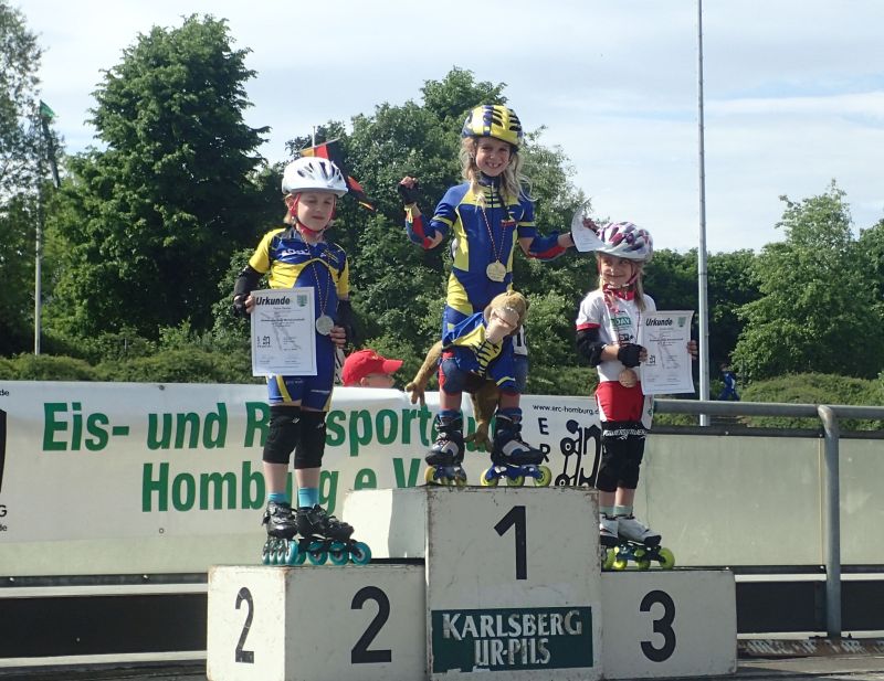 Der Vormittag begann mit den Geschicklichkeitsläufen der Schüler. Sara konnte hier mit nur 2 zehntel Sekunden Rückstand Platz 2 belegen während Maurice eine Fahrfehler mit dem 5. Platz im Parcours bezahlen musste. Aber die Topform der beiden jüngsten Sportler des Vereins sollte sich danach in den 30m Sprints beweisen. Maurice startete schnell und lieferte sich mit seinem Kontrahenten aus Homburg ein Fotofinish und sicherte sich Platz 2. Auch Sara erreichte das Finale der besten 4 Sprinter und rannte der Konkurrenz im Finale davon und hatte so ihr erste Goldmedaille gesichert. Am späten Nachmittag konnte dann auch Maurice in einem schnellen Rennen über 300m klar einen Sieg verbuchen während es bei Sara andersherum um 3 hundertstel Sekunden nicht für den Sieg reichte.