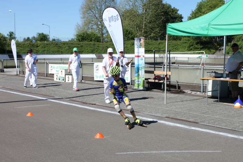Sara Scholl machte den Anfang bei der SDM 2017 im Inline-Speedskating in der Kategorie Schüler C Damen (Jg. 2008-2009) mit einem guten 8. Platz im Geschicklichkeitsparcours. Im 30m Sprint konnte sie sich auf Rang 7 steigern. Danach folgte die Disziplin 300m, bei der sie sensationell mit dem 4. Platz nur um Haaresbreite eine Medaille verpasste.