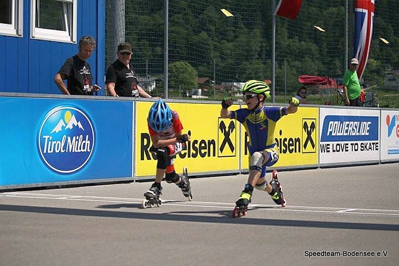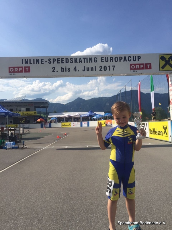 Yan Marosi startete als jüngster vom Speedteam in der Kategorie Schüler D (AK6-7) und gewann sensationell alle drei Disziplinen, die Mitteldistanz über 125m, den Parcours in 13,25s und die Langstrecke über 250m in 43,605s bei seinem ersten großen internationalen Wettkampf.