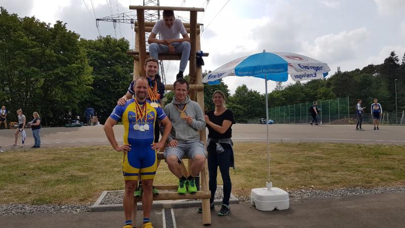Ralf und Maik landeten in der AK40 über 500m gleich den ersten Erfolg indem sie hinter einen Bernhausener Sportler das Podium komplettierten. Auch in den nachfolgenden Rennen über 1000m und 3000m konnte sich Maik die Silbermedaille sichern, Ralf immerhin wenn auch undankbaren den beachtlichen vierten Platz. Sonja und Marco hatten mit starker Konkurrenz zu kämpfen, lieferten aber starke Rennen ab und kämpften bis zum Ende. Bei den Junioren war ein Großteil des Nationalkaders gegen Marco am Start. So blieb ihm zwar nur der letzte Platz, dennoch über 500m mit einer um 3/10 Sekunden schnelleren Zeit als Sebastian und vor allem der Respekt, an einem Tag über 1000m, 5000m Punkte, 5000m Ausscheidung und an zwei Staffeln an den Start zu gehen. Zwei von Sebastians Konkurrenten in der AK30 waren leider nicht am Start, so dass die Titelkämpfe für ihn zum Zweikampf wurden, welchen er souverän über alle drei Distanzen 500m, 1000m und 3000m Punkte für sich entschied.