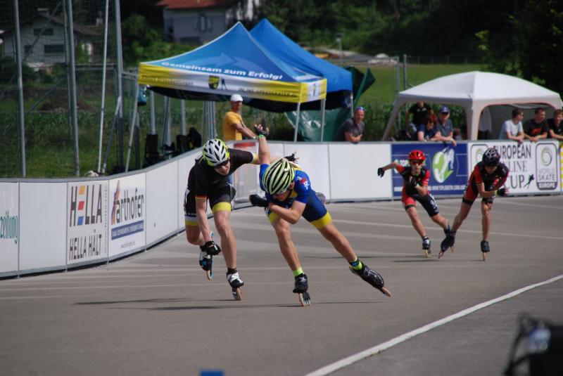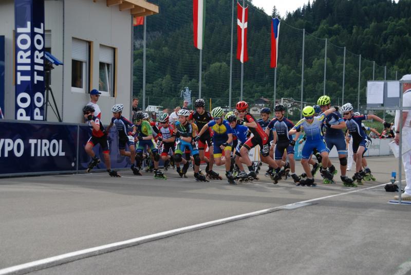 Die Speedskate Arena in Wörgl (Tirol, Österreich) war der Austragungsort für den Europacup im Inline-Speedskating von Freitag, 25. bis Sonntag, 28. Juni. 170 Sportler aus neun Nationen waren in den vier Altersklassen am Start. Über drei Renntage ging es über die Sprint- und Langstrecken Distanzen um die Punkte für die Gesamtwertung. Vom Speedteam Bodensee ging Maurice Marosi an den Start. Der 14-jährige Häfler vom Graf-Zeppelin-Gymnasium gewann am vergangenen Wochenende bereits drei Deutsche Meistertitel in Halle (Saale) und zählte in der Altersklasse der Kadetten zum Favoritenkreis. Jedoch war die 20-köpfige Konkurrenz aus Belgien, Tschechien, Österreich, Ungarn und Deutschland stark besetzt. Am Freitag startete der Europacup mit den 500m Sprints, welcher im Aussscheidungsmodus gefahren wurde. Über Vorläufe, Viertel- und Halbfinale wurden die vier Finalisten ausgefahren. Maurice teilte sich die Kräfte gut ein und sicherte sich einen Platz im Finale. Dieses musste leider aufgrund eines Unwetters auf dem Samstag vormittag verlegt werden, was eine zusätzliche Belastung für den Skater vom Bodensee bedeutete.