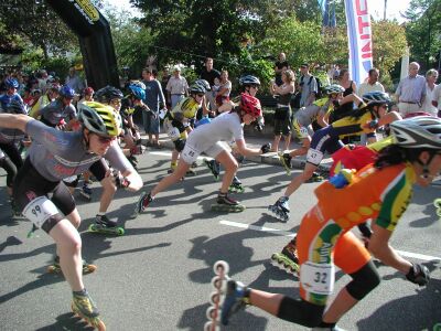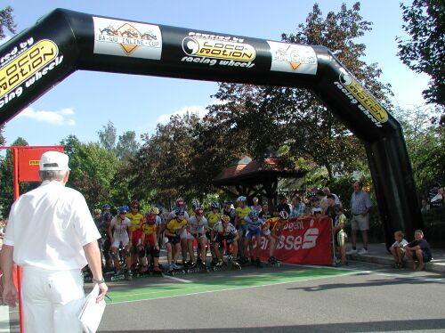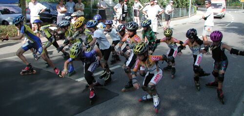 Am späteren Abend folgte noch das Teamzeitfahren. Jeweils 4 Skater fahren in einer Gruppe zusammen und versuchen durch möglichst geschicktes Windschattenfahren und taktisches Wechseln ein hohes Tempo über 4 Runden zu halten. Noch einmal ging es um die wichtigen Punkte für die Mannschaft.