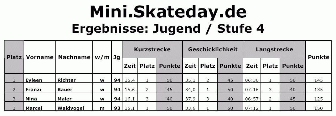 Mini.Skateday 2006, Schüler A