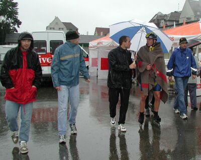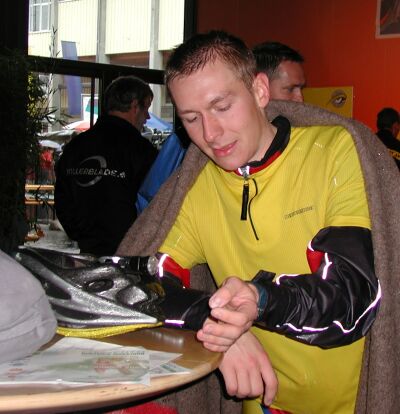 "Wie im letzten Jahr auch gab es nichts zu meckern. Pech war leider das Wetter, was nicht viel schlimmer sein konnte. Kalt und der Tag mit dem meisten Regen des Jahres. Start war auch wie letztes Jahr wieder um 7:00 Uhr früh und es ging auf die lange Reise bis kurz vor Kreuzlingen. Bei den wohl schlechtesten Wetterbedingungen starteten nur Corny und Olli, der Rest verschenktet die überhohe Meldgebühr und konnte derweil im Parkhaus ein Paar Runden im trockenen drehen, während die anderen durch die schöne Landschaft ""surften"". Dafür konnte endlich mal ein angemesserner Empfang für die Kämpfer des Teams bereitet werden und so harrten wir lange bis endlich Olli und dann Corny das Ziel erreichten. Nach ein heißen Dusche und eine ausführlichen Massage ging es dann wieder im immernoch strömenden Regen zurück in die Heimat."