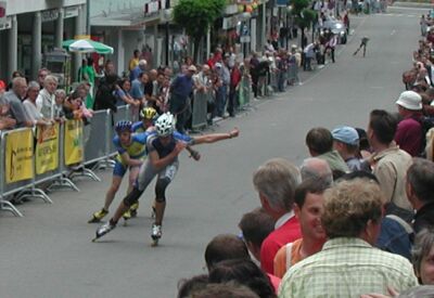 LastManOut Rennen als Demonstrationsrennen für den Inlinesport. 10 Runden auf einem Innnenstadtkurs mit je ca. 1 km Länge. schneller Kurs mit leichter Steigung um Zielbereich.