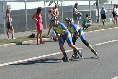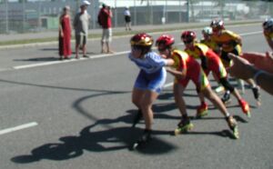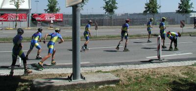 von den Salomon und Rollerblade Nationalfahrern eine Attacke gefahren, die so schnell