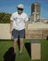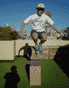 an das Ende einer Treppe. Füße zusammen. Gehe in die Skateposition. Springe