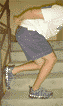 Stelle den einen Fuß nach vorne und den anderen nach hinten Mit dem Knie auf dem Boden. Ohne Aufzustehen, schiebe dein hinteres Bein nach vorne als würdest Du sehr tief gehen. Diese werden manchmal Entenschritt genant, weil