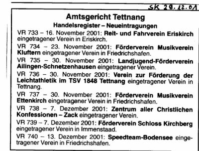 Eintragung ins Vereinsregister: