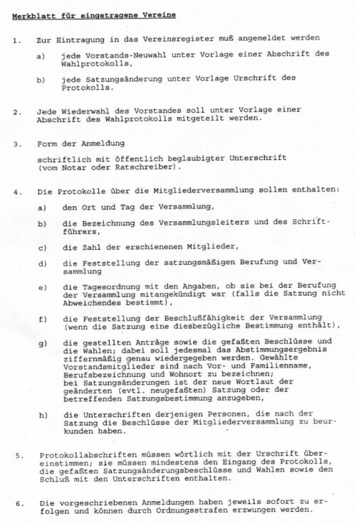 Und das Beiliegende Merkblatt über Richtlinien für eingetragene Vereine in Deutschland: